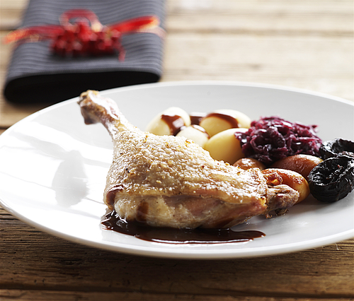 Få serveret den lækreste andesteg med klassisk tilbehør...