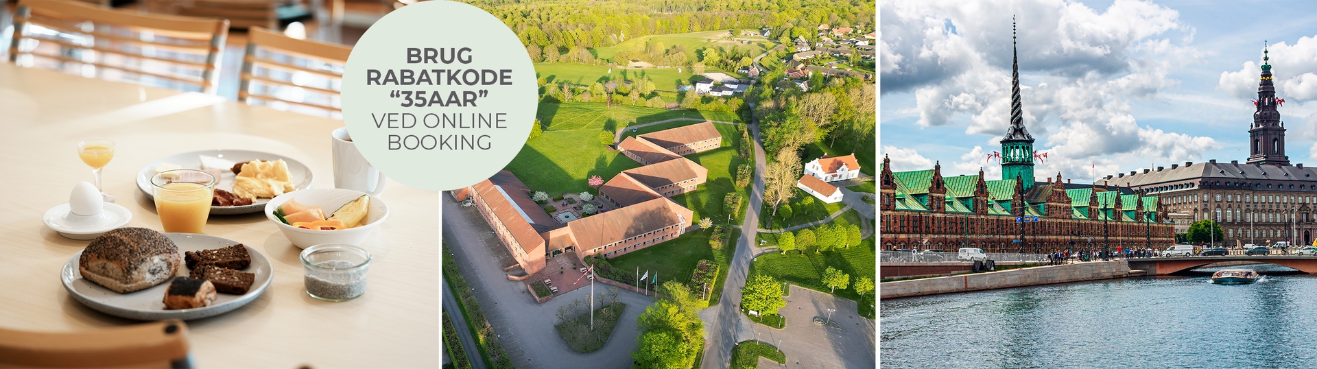I forbindelse med Danske Hoteller A/S' 35-års jubilæum kan du booke en overnatning inkl. dansk morgenbuffet med 35% rabat i perioden 3. november 2025 - 30. april 2026.